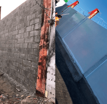 Un lavoro che mi ha impegnato nel periodo natalizio scorso è stato quello di eseguire un’opera di demolizione per ridefinire la recinzione di un sito adibito ad attività commerciale. Con i miei dipendenti abbiamo rimosso una porta in ferro sita a perimetro della recinzione. Abbiamo eseguito una gettata di calcestruzzo, come base del muro che è andato a sostituire la porta rimossa. Abbiamo realizzato il muro con blocchi di cemento 20x20x50 cm. per ca. 16 mq. Abbiamo intonacato, verso l’esterno della sede, tutto il muro perimetrale per una superficie di ca. 60 mq., per poi imbiancare con fissativo e idropittura per esterni la stessa superficie. Poi abbiamo ottimizzato la collocazione del filo spinato già presente sul muro perimetrale. Tutto il lavoro, come sempre, è stato completato dalla pulizia del cantiere e dal trasporto in discarica del materiale residuo.